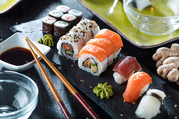 • Nigiri sushi (oval-shaped sushi rice with toppings such as salmon)